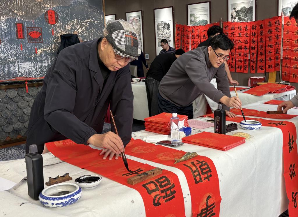 1月14日上午,由学校工会主办,校关工委、教工书法协会协办的“墨启新岁 笔开宏图”迎新春送春联活动在桃苑举办。活动现场墨香四溢,红纸翻飞,为冬日校园增添了浓浓的暖意与年味。相关部门负责人及300余名教职工参与活动。